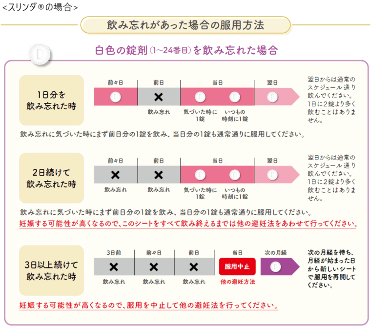 - 上飲み忘れた場合は避妊効果が落ちます