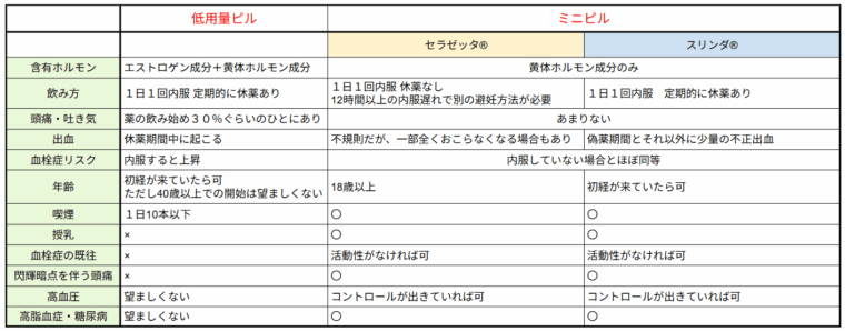 ミニピル(セラゼッタ®・スリンダ®)ご希望の方