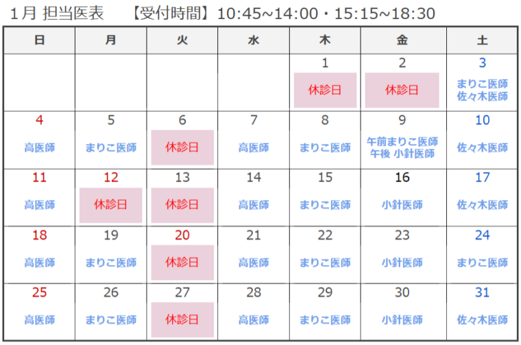 1月9日より毎週金曜日(10:45-18:30)婦人科:小針医師の診察が開始します